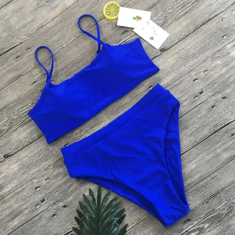 2021 летний сексуальный комплект бикини, женский купальник, однотонное бикини, высокая талия, купальник, мягкий бюстгальтер с открытой спиной и бретельками, купальник