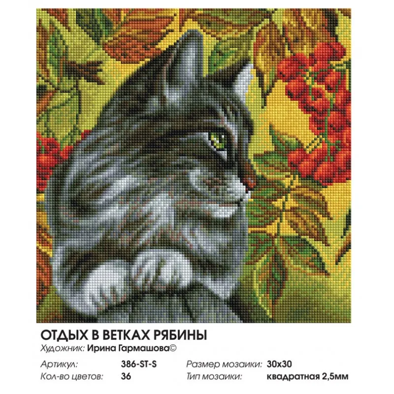 "Отдых в ветках рябины" Алмазная мозаика на подрамнике 30х30 см. Белоснежка. 386-ST-S