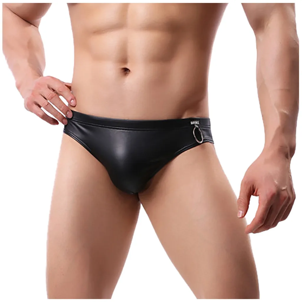 Трусы мужские кожаные, с кольцом, мягкие, сексуальное нижнее белье
