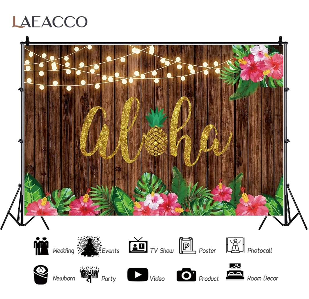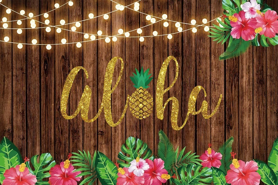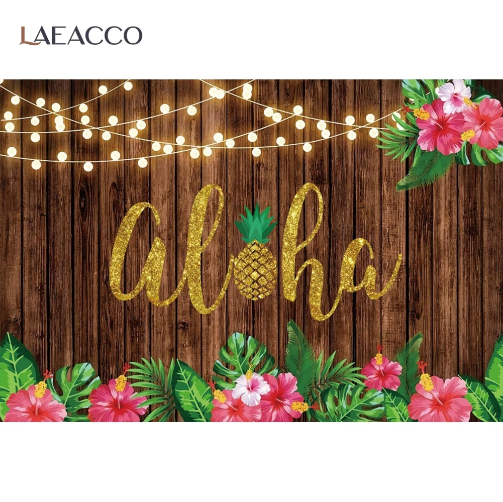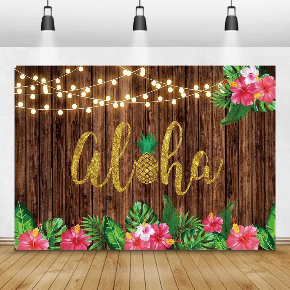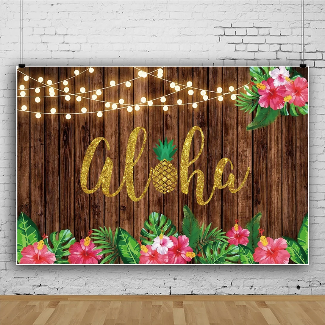 Винтаж деревянная доска Aloha с цветочным принтом Гавайи тропические растения светильник фон для фотосъемки с изображением маленьких День рождения фон для фотостудии