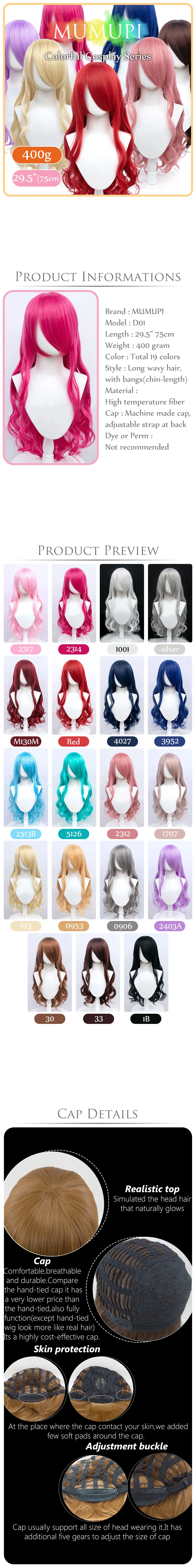 Парик из Синтетических Длинных Волнистых Волос Лолита для косплея женщин, красные розовые синие фиолетовые волосы для наращивания в стиле аниме, MUMUPI