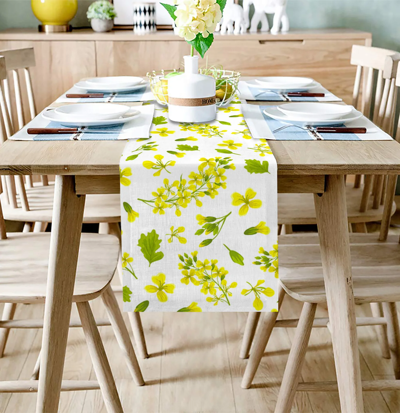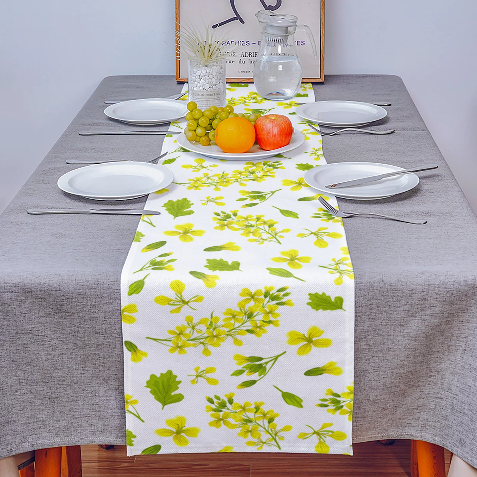 Настольная дорожка с желтыми цветами, листьями, весна, для дома, кухни, обеденного стола, Декоративная скатерть и салфетки, декор для свадебного стола
