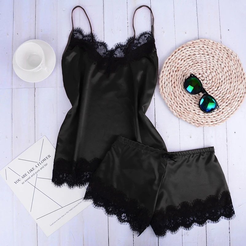 Ночная рубашка Женская атласная, без рукавов, 2 шт.