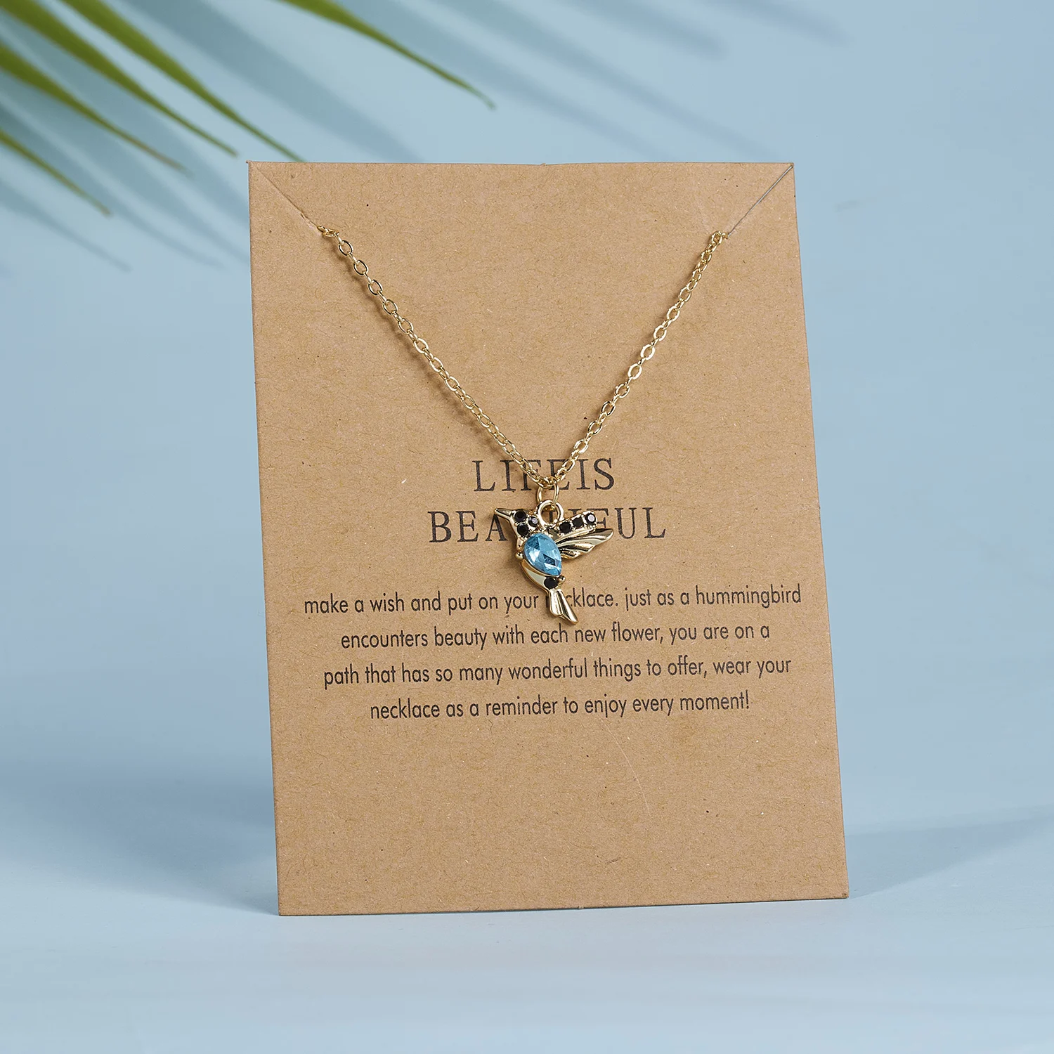 Винтажное ожерелье с кристаллами, животными, колибри, модное роскошное ожерелье золотого цвета, цепочка до ключиц, птицы, ожерелья и подвески с бумажной карточкой