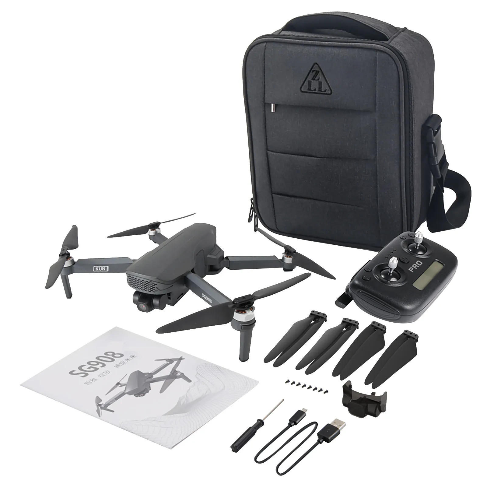 1 x Квадрокоптер SG908 RC 1 х пульт дистанционного управления 1x7,6 V 3400mAh Lipo батарея 4 запасных пропеллера 1 х USB кабель для зарядки 1 отвертка 8 x запасной винт 1 x Руководство пользователя