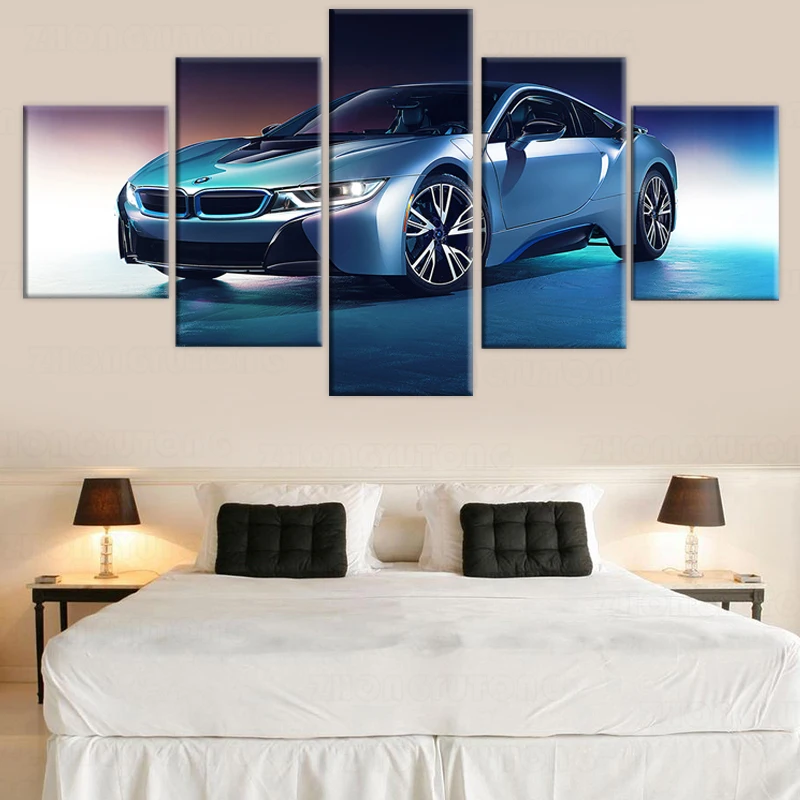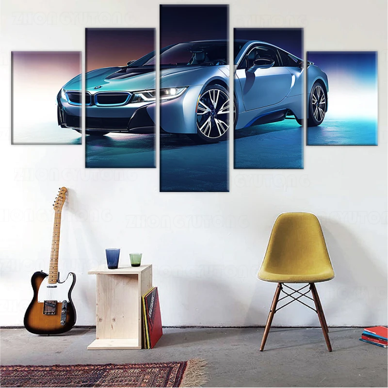 Холст искусства 5 шт. HD картины BMW I8 автомобиль плакат стены искусства холст картины для домашнего декора Плакат Настенные картины для гостиной