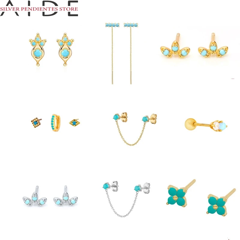 Женские серьги-гвоздики с двойным бриллиантом AIDE, серебро 925 пробы, простые бирюзовые серьги в форме листа лотоса, ювелирные изделия