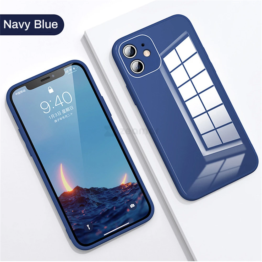 Оригинальный чехол из закаленного силикона для iPhone 11 12 Pro Max 12Mini XS XR X 8 7 Plus SE 2020, жесткий защитный чехол для объектива