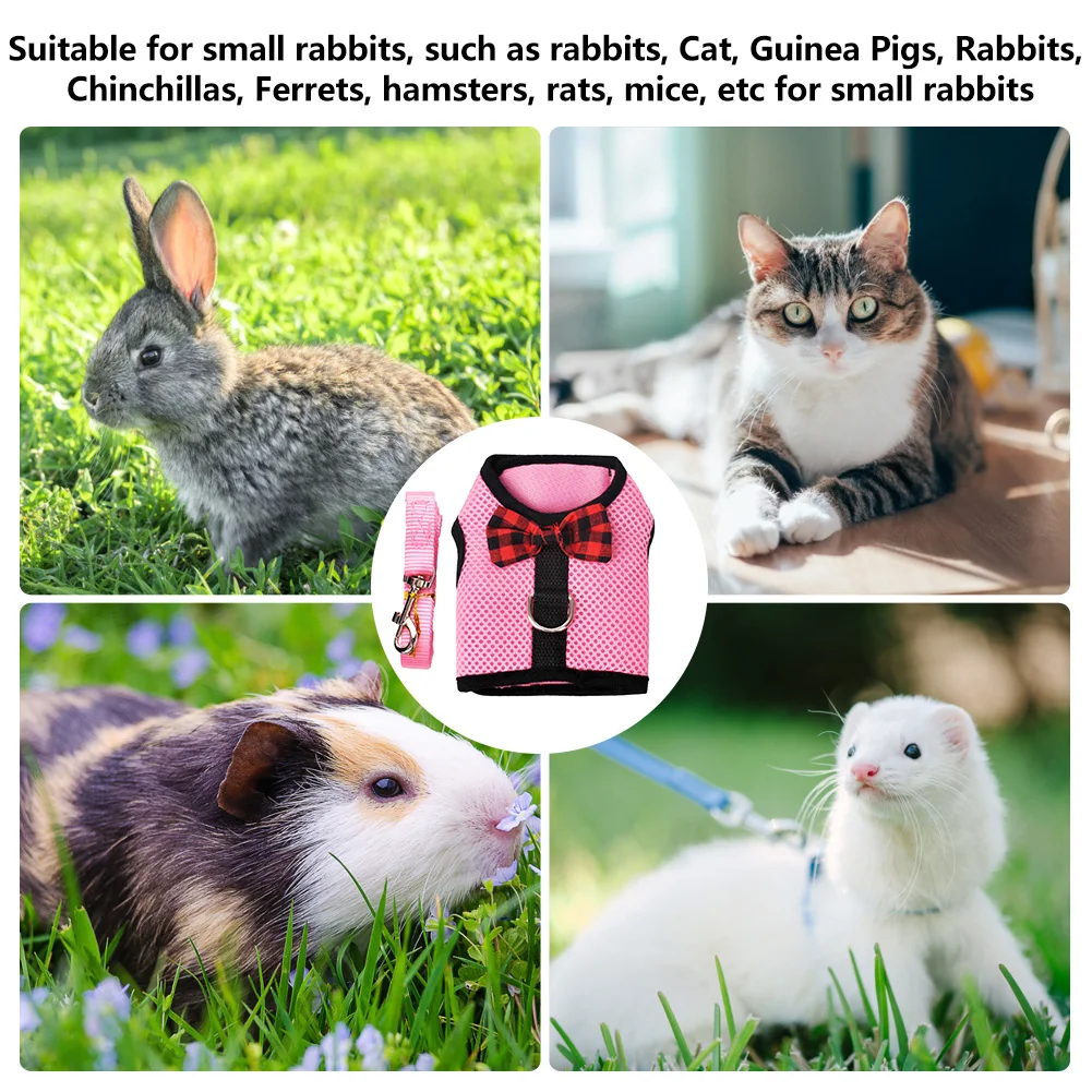 Кролики хомяк Жилет Жгут с Leas кролик сетки нагрудный ремень жгуты хорькаАксессуары для животных из морской свинки Сетчатая мягкая шлейка с поводком для домашних животных, маленькая жилетка для хомяков, кроликов, кроликов, маленьких животных, аксессуары для домашних животных