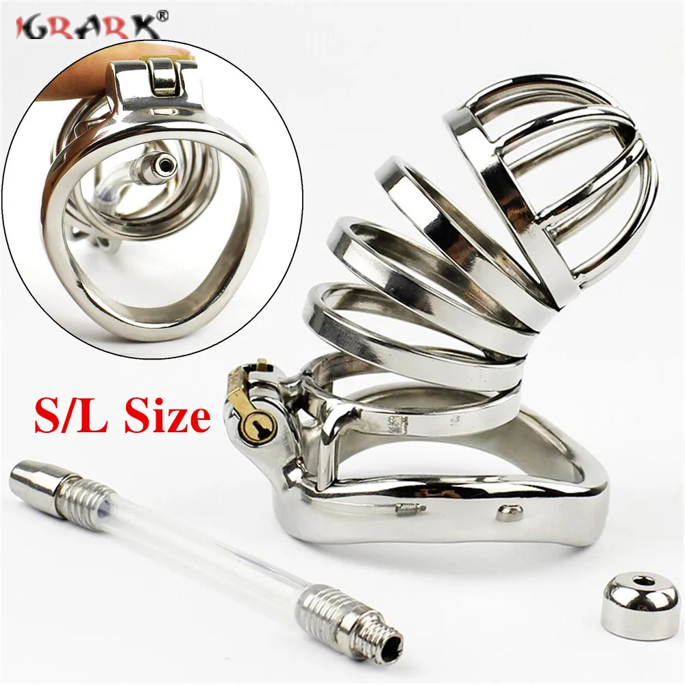 Мужское устройство верности из нержавеющей стали, клетка на пенис, Запираемые секс-игрушки для мужчин, насадка на пенис, кольцо на пенис, геи, игры для взрослых, Эротические товары