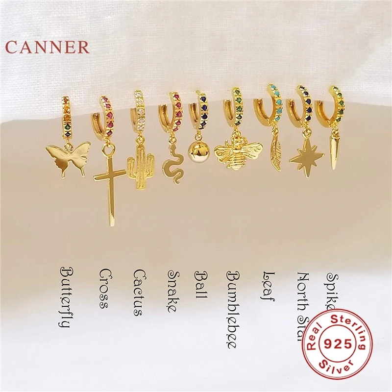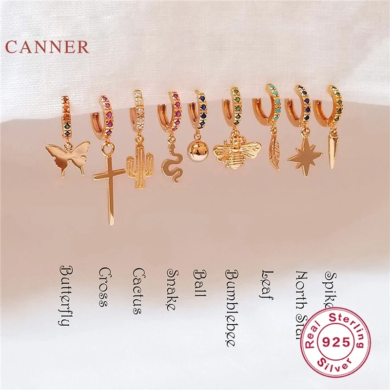 Автоклав 925 стерлингового серебра серьги для женщин с заклепками звезда бабочка лист Бабочка крест серьги обручи Pendientes плата ювелирные изделия