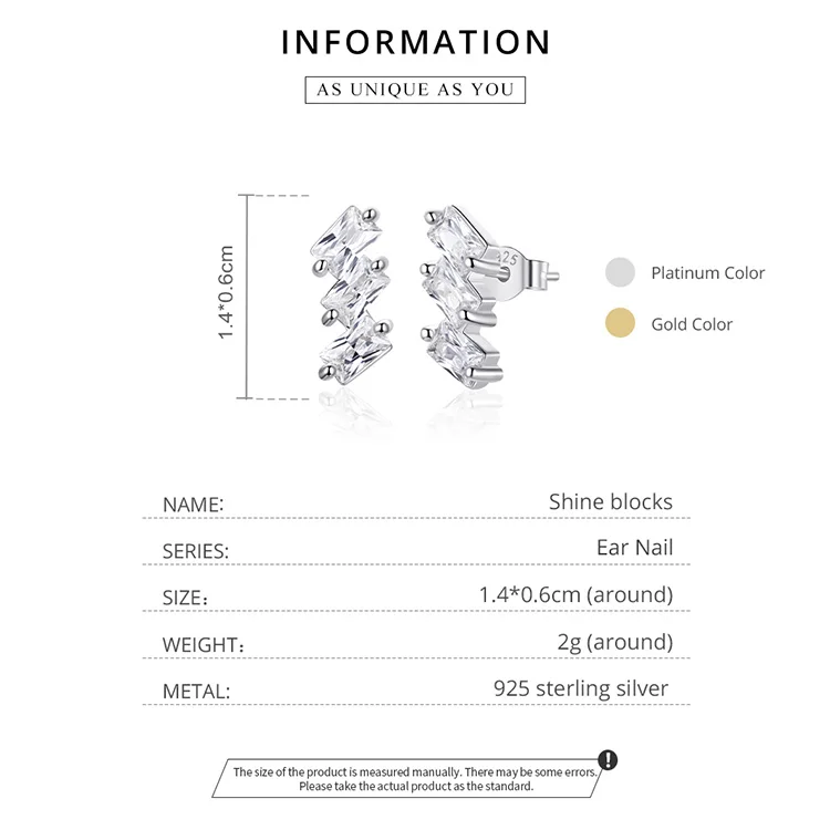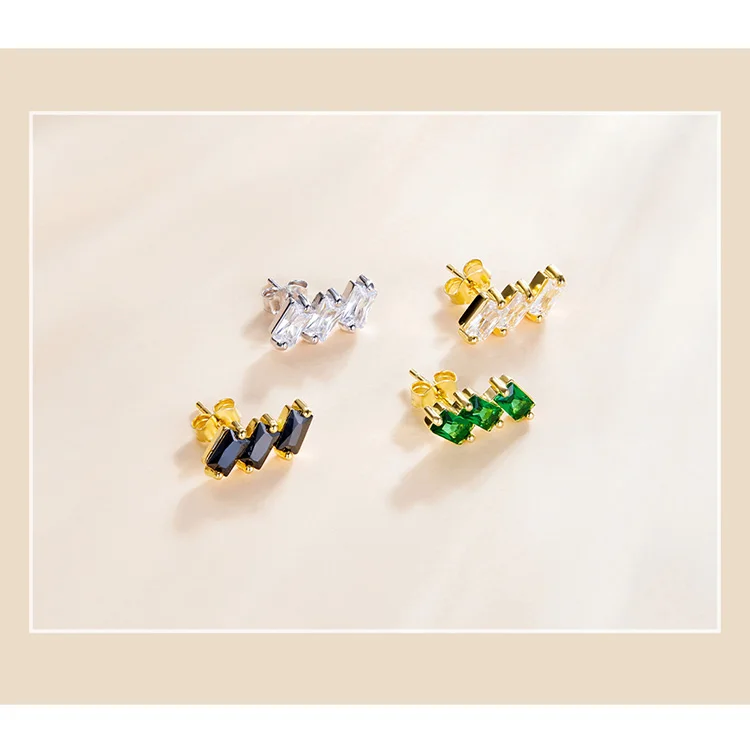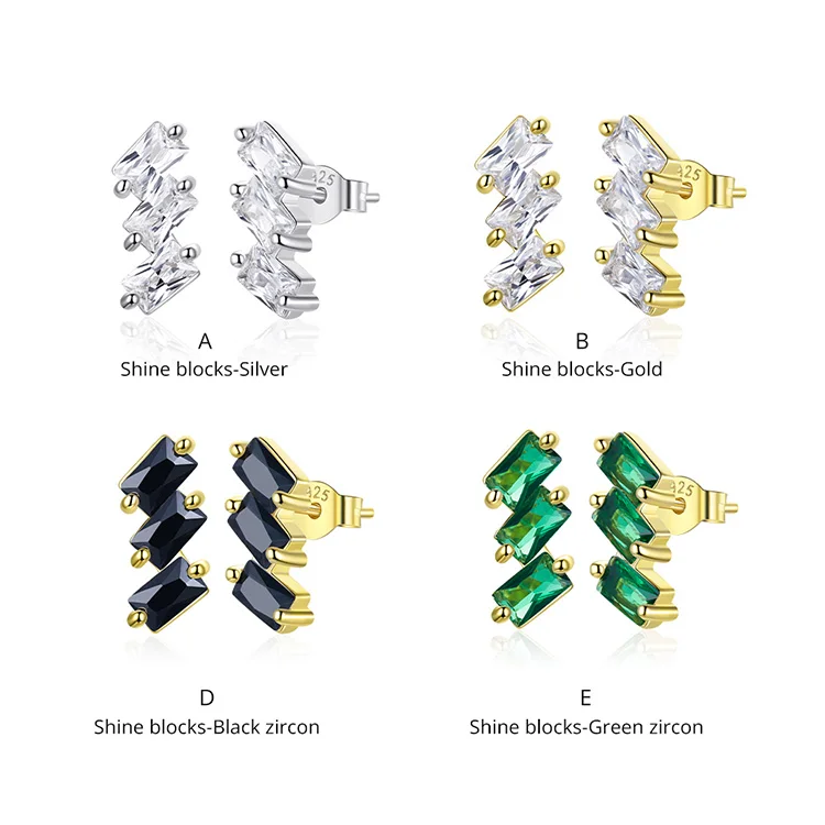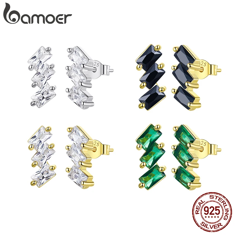 Bamoer CZ квадратные серьги-гвоздики для женщин из стерлингового серебра 925 пробы, модные серьги-гвоздики золотого цвета, ювелирные украшения, аксессуары SCE1051