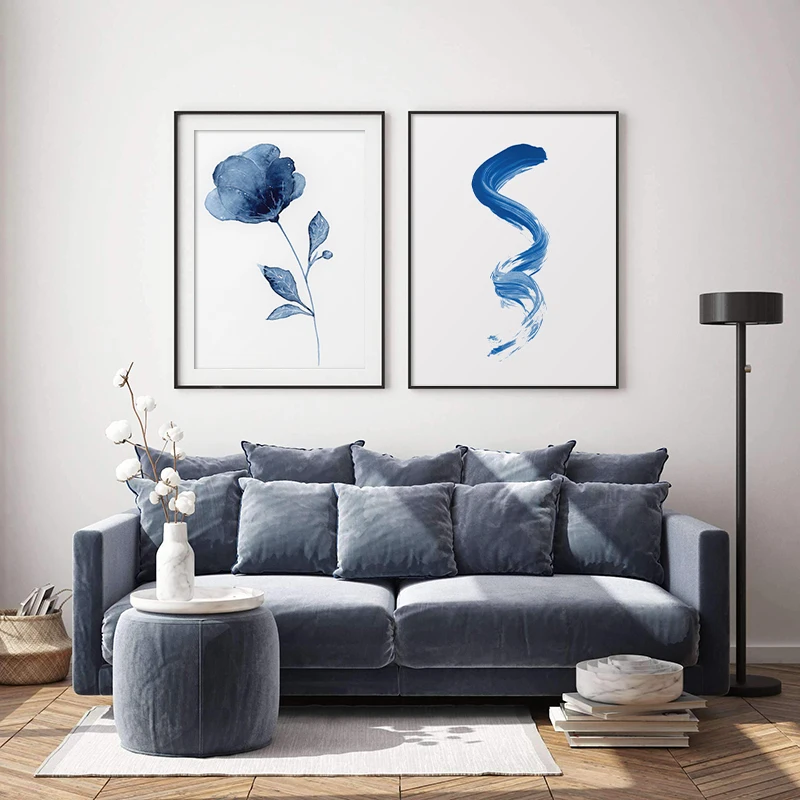 Скандинавская Картина на холсте Цветы плакат синий цветочный настен...