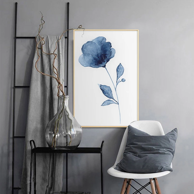 Абстрактные акварельные Индиго цветы настенные художественные картины синие чернила холст картины плакаты и принты для гостиной украшения дома