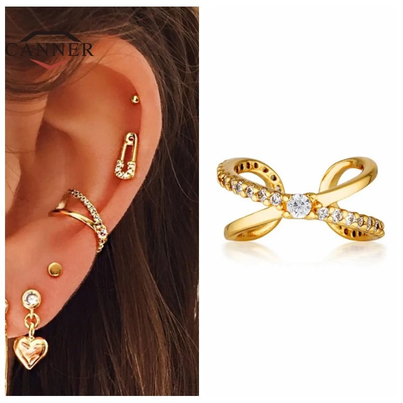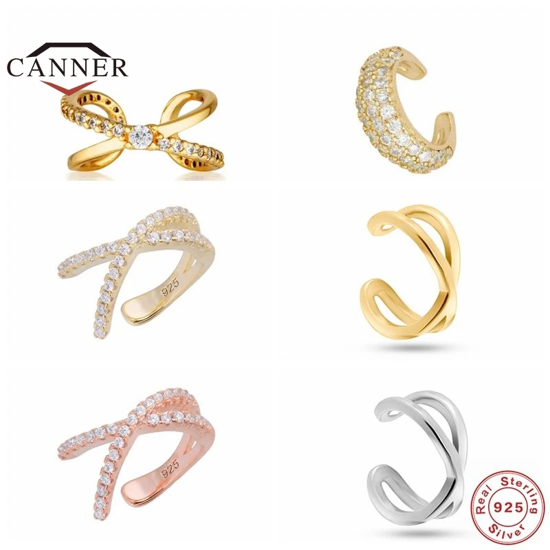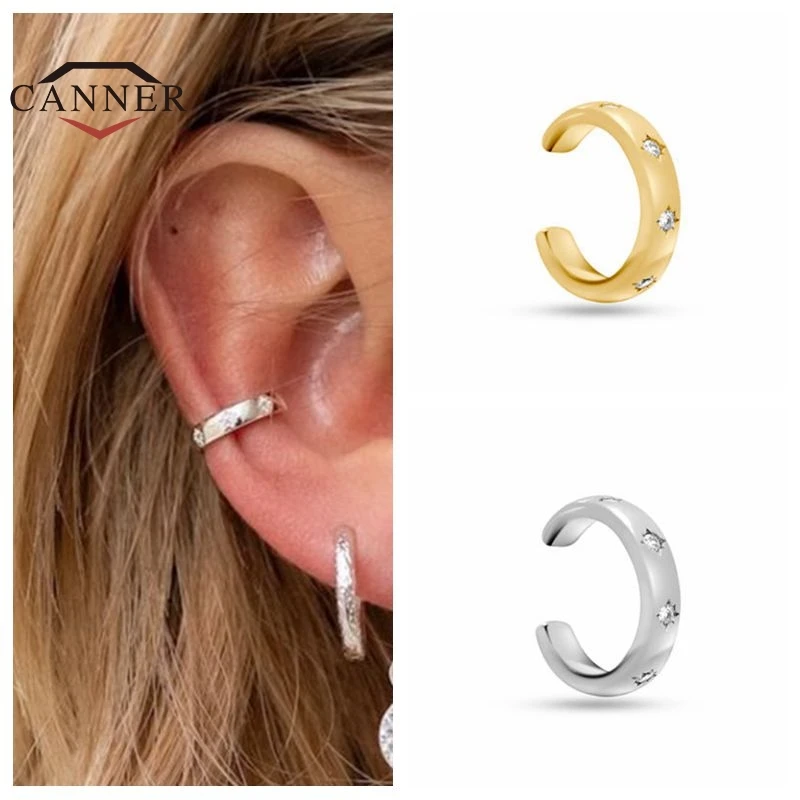 Серьга-клипса CANNER из стерлингового серебра 925 пробы с фианитом в минималистическом стиле женская, Ювелирное Украшение для ушей, 1 шт.