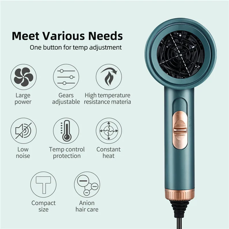 Фен для волос Blue Anion, высокотехнологичные мощные стильные сушилки с защитой от ожогов и функцией быстрой сушки, с регулировкой температуры, с низким уровнем шума