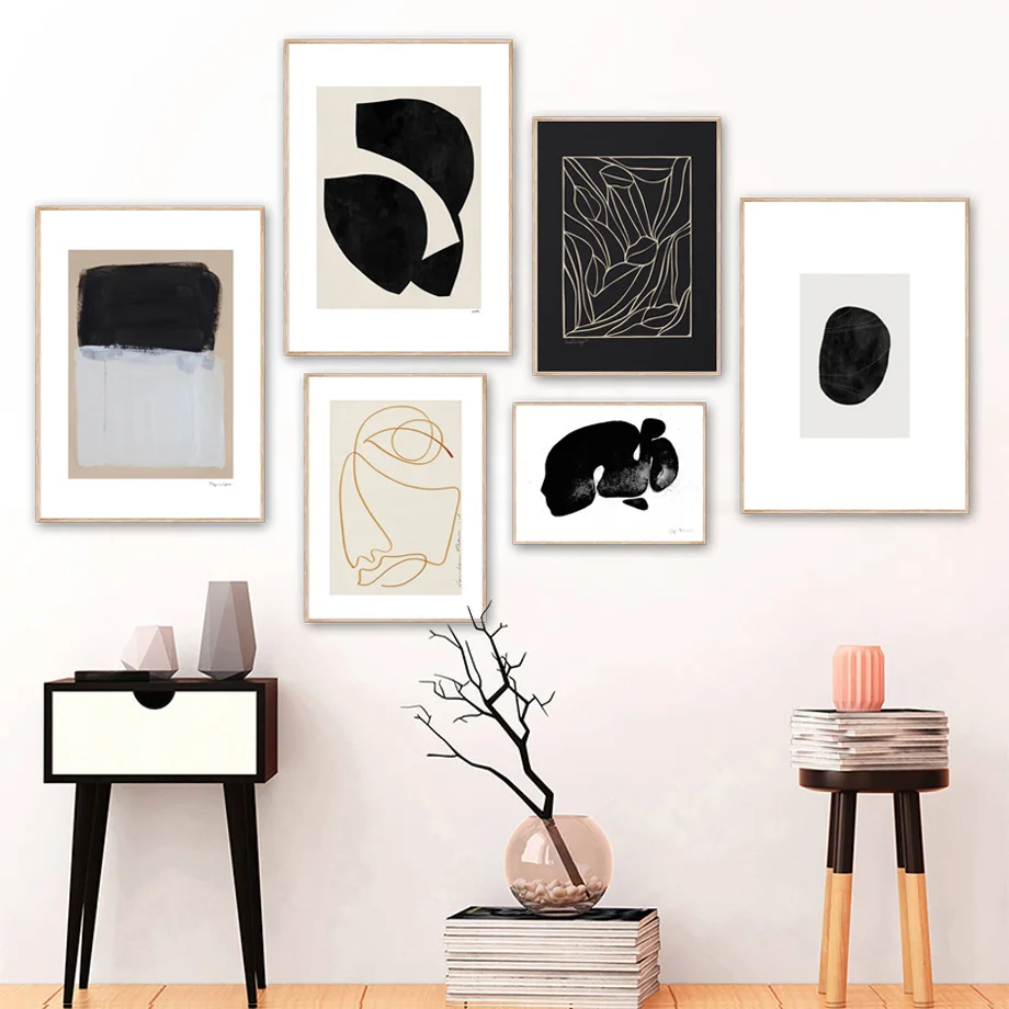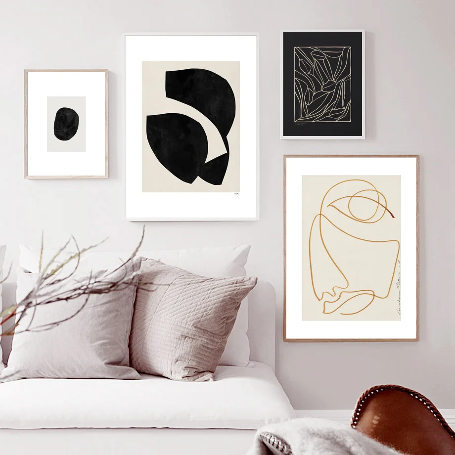 Скандинавская настенная живопись с черно-белыми абстрактными линиями жикле, скандинавские постеры и принты, настенные картины для декора гостиной