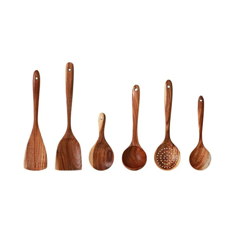 Набор кухонной утвари Тиковая деревянная Антипригарная посуда инстр...