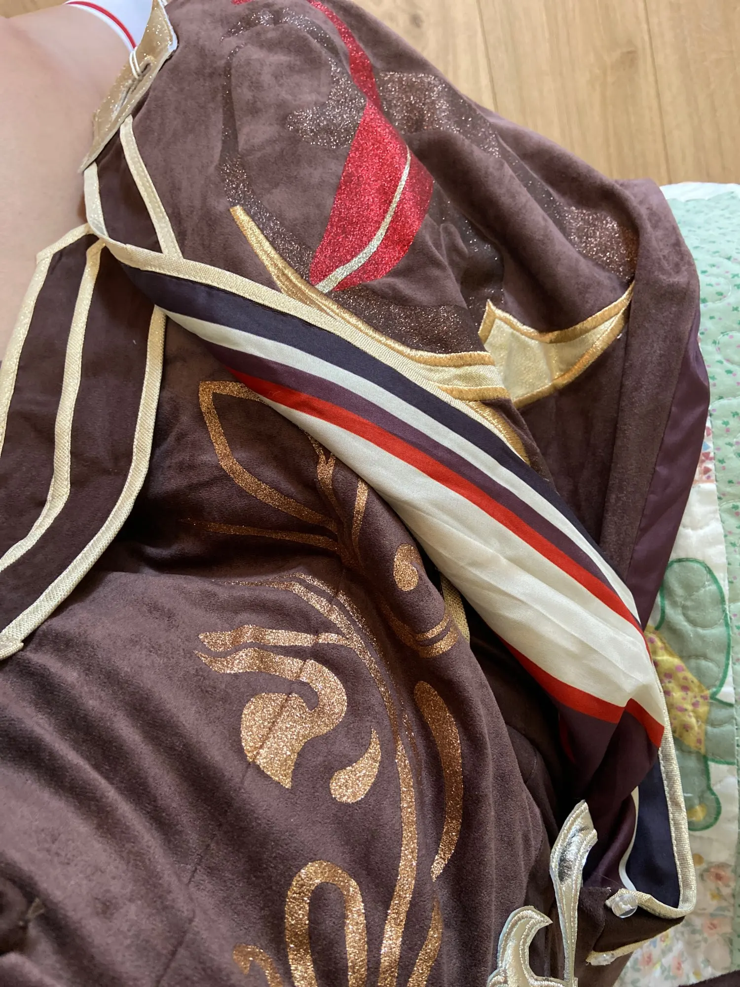 товар приехал спустя 7 месяцев ожидания. был открыт спор и продавец ничего не смог предложить, никакой компенсации. но алиэкспресс был на моей стороне=) у одного кольца отвалился красный камушек. а так костюм класс, всем советую, очень комфортно носить. люблю хутао очень сильно!