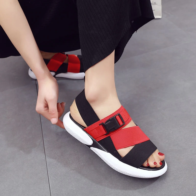 Спортивные сандалии для студенток, новинка 2021, летняя универсальная Повседневная пляжная обувь на толстой подошве для беременных женщин, красная сетчатая обувь