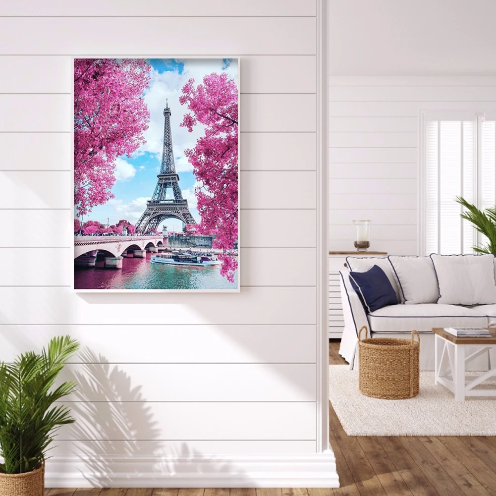 Алмазная живопись "Эйфелева башня", 5D "сделай сам", Круглая Мозаика, стразы, наборы изображений, Настенный декор, ручная работа, подарок, домашний декор