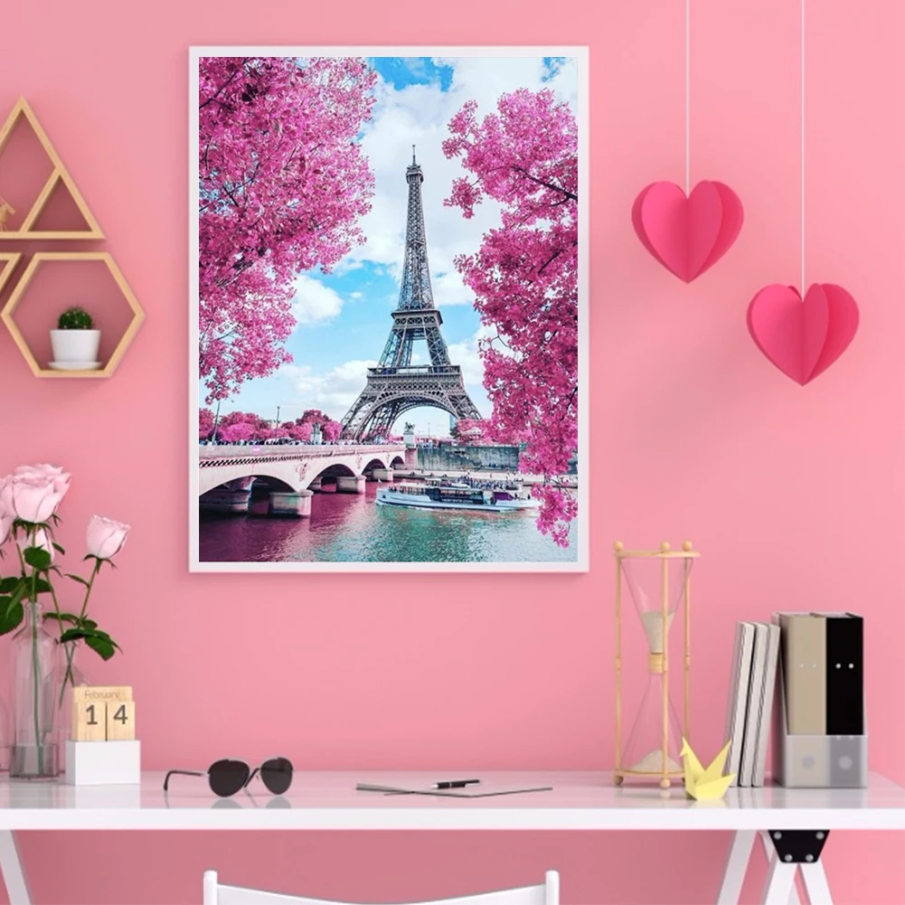 Эйфелева башня алмазная живопись 5D DIY Полный Круглый дрель мозаика Стразы наборы изображений Настенный декор ручной работы ремесло подарок домашний декор