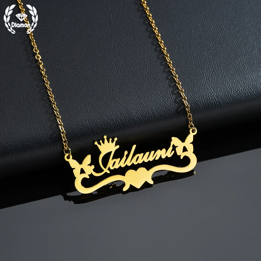 Diamon 2021 новая бабочка с персонализированным именем ожерелье для женщин именная табличка ювелирные изделия из нержавеющей стали пользовательские буквы модный подарок