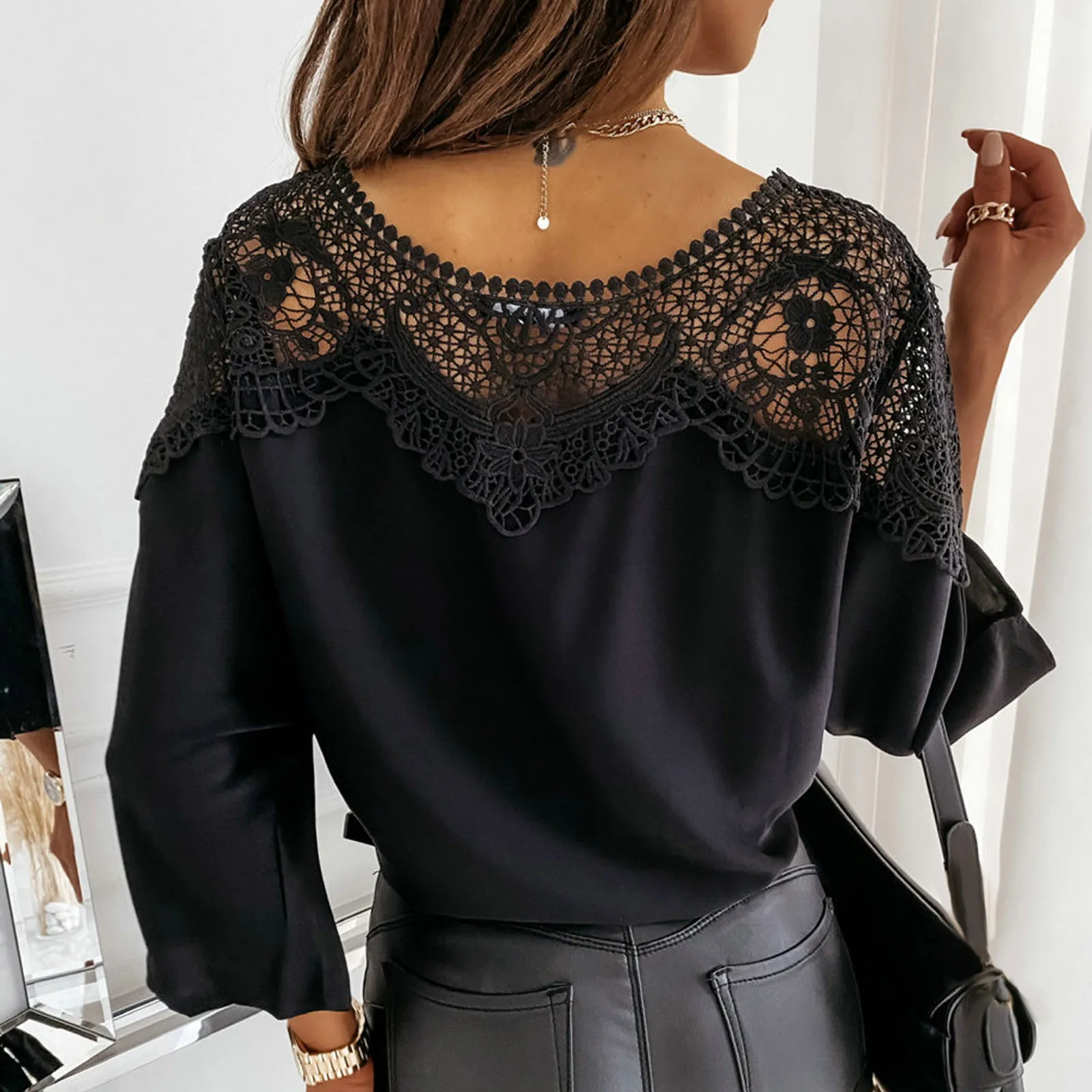 Модная женская однотонная кружевная блузка с длинным рукавом и вырезами, Сексуальная Повседневная блузка, топы