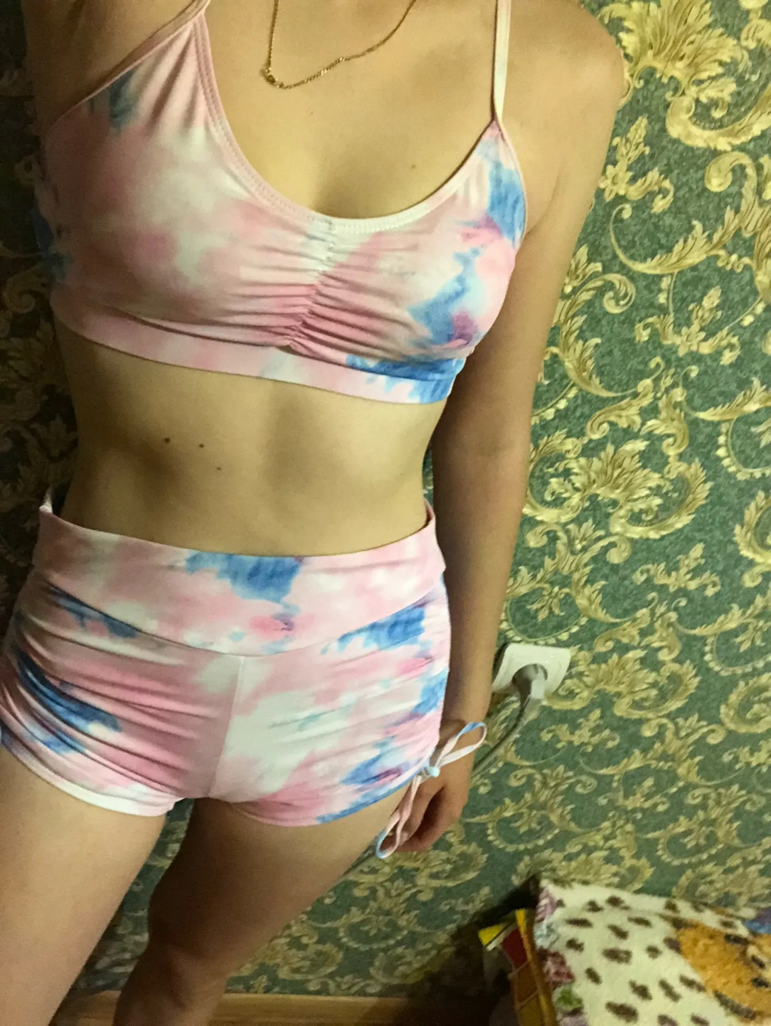 Купальник супер. Мой рост 177 см, вес 63 кг, обхват груди - 93 см, под грудью - 82 см, обхват талии - 72 см, обхват попы - 95 см. Заказала размер L. Верх сел идеально, к низу есть претензии… обхват ноги в месте, где заканчиваются шорты - 54 см и там шорты давят, некомфортно, сзади тоже некрасиво, т к впивается, в талии большеваты