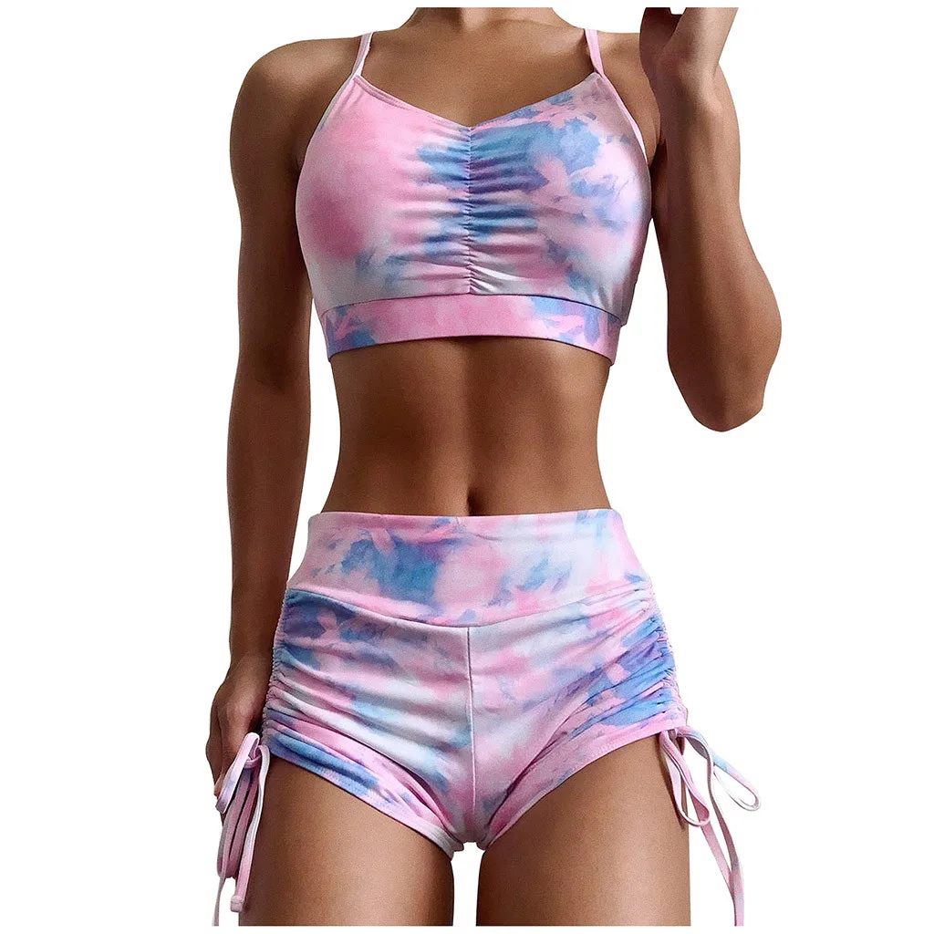 Новое поступление 2021 г., Женская майка, шорты, комплект бикини, купальники с пуш-апом, пляжная одежда, бикини, женское микро бикини