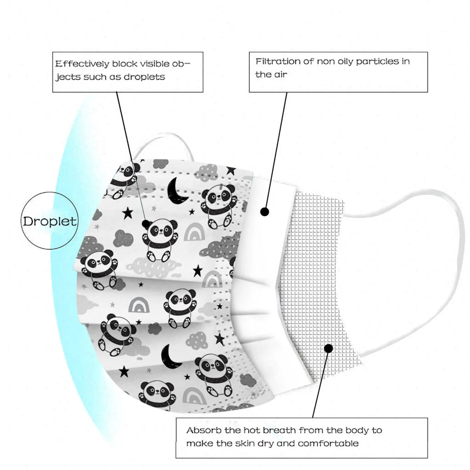 50 шт., детская одноразовая маска для лица с мультяшным принтом панды