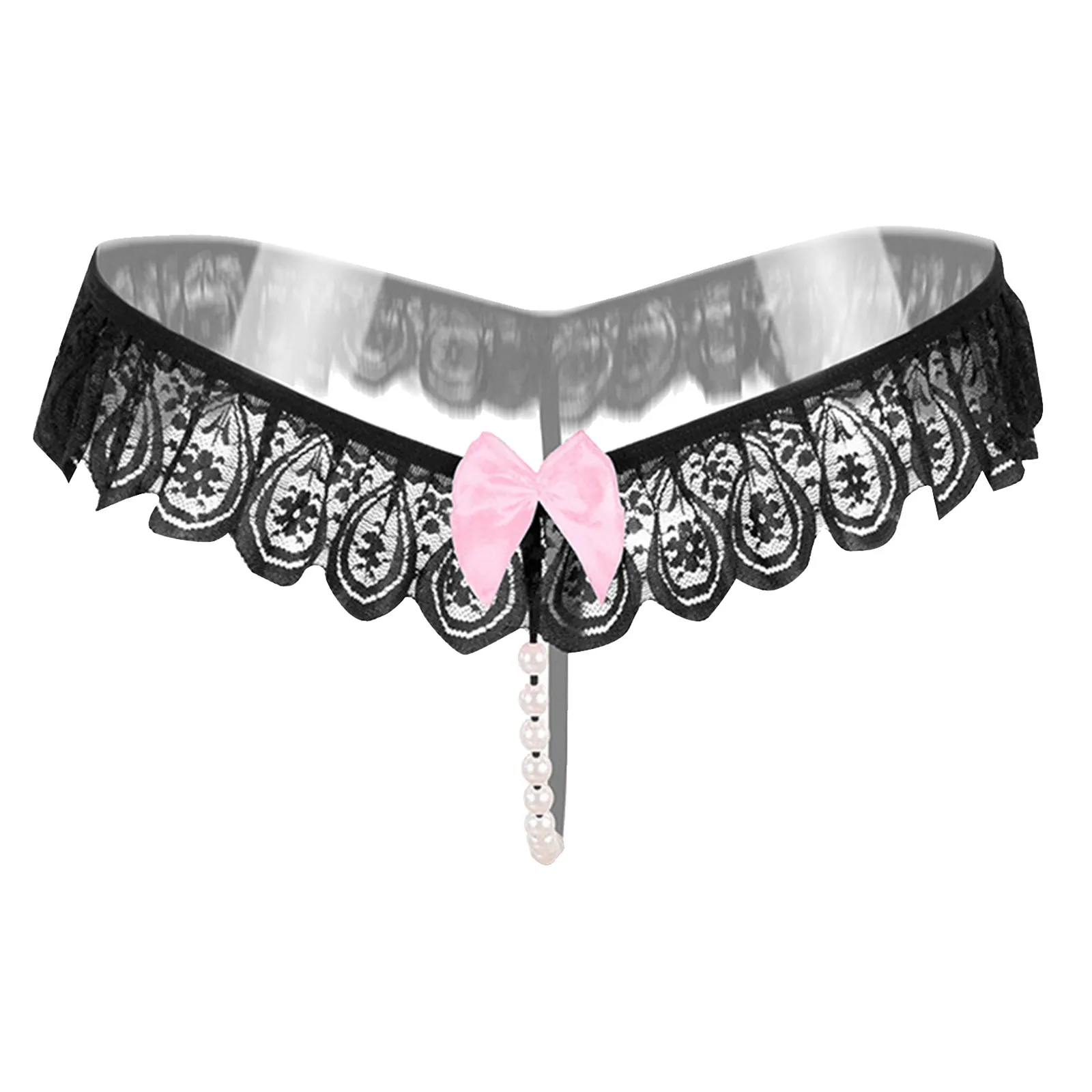 Женские кружевные трусики-стринги с вырезами, стринги с жемчугом, сексуальное женское нижнее белье