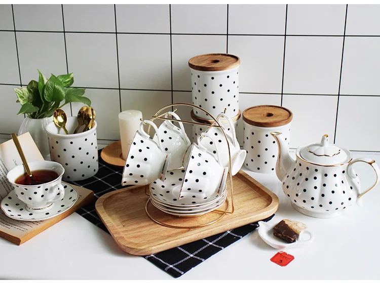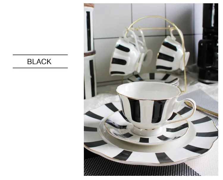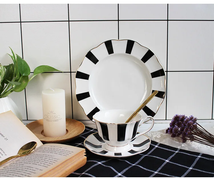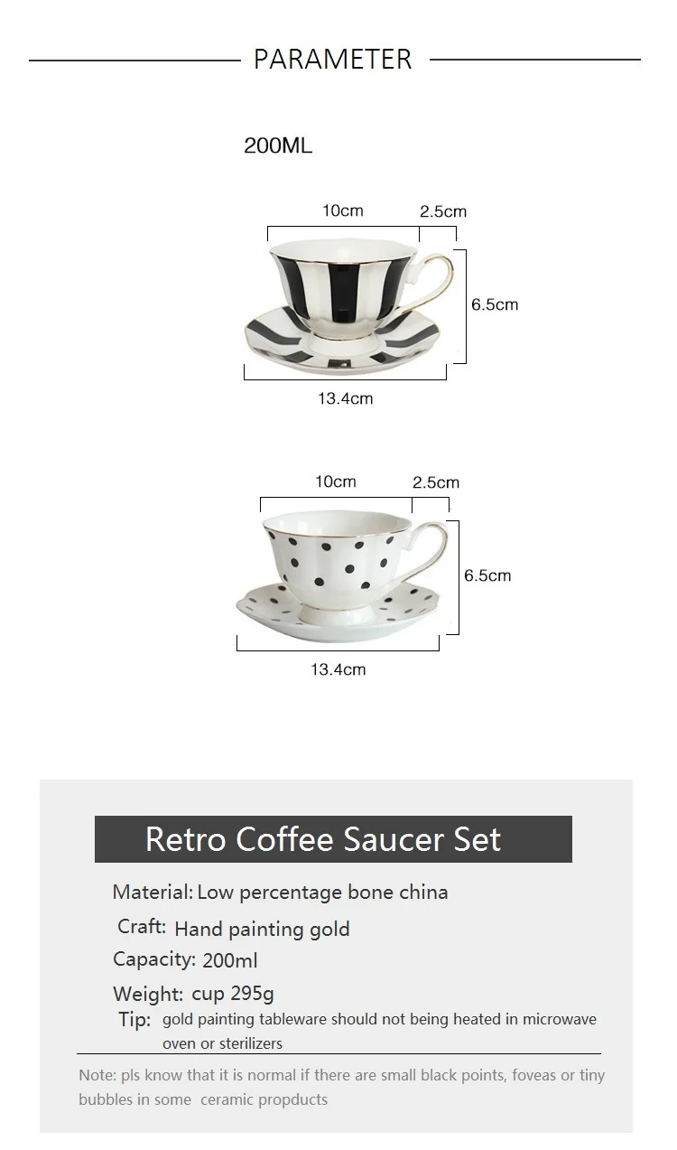 Новинка 2021, 200 мл, британская чашка для кофе и блюдца в стиле ретро, черные керамические чашки с узором в горошек и полоску
