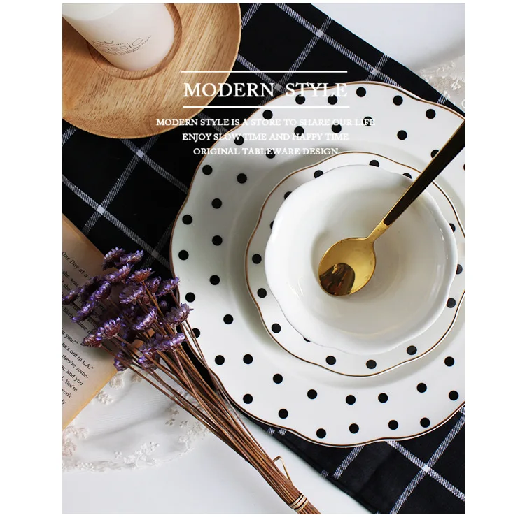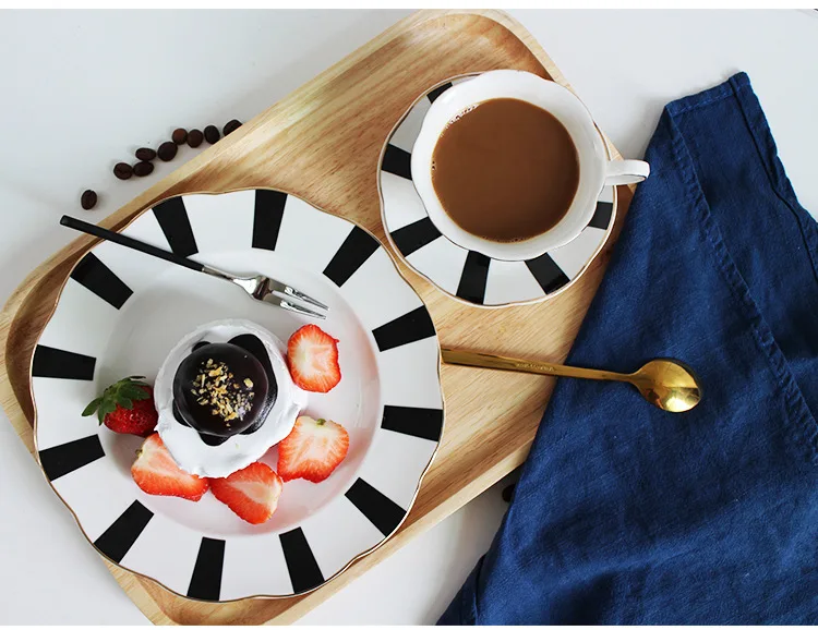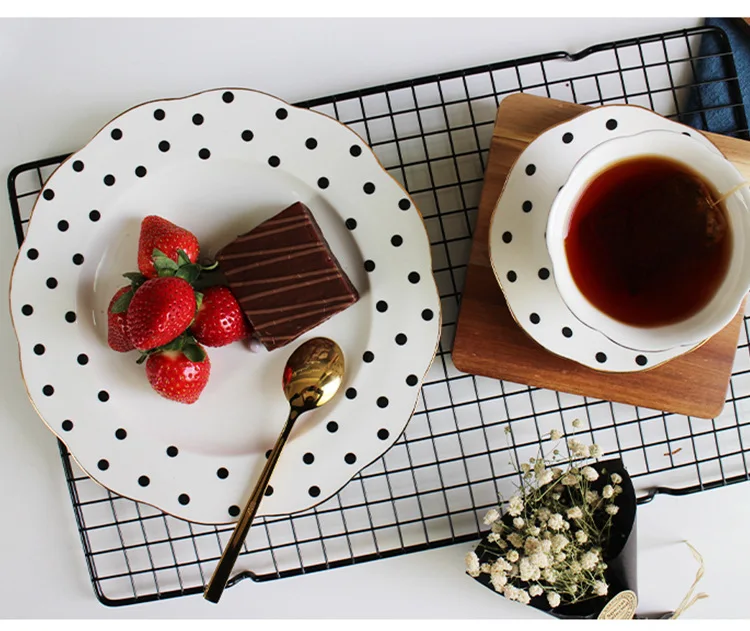 Черно-белая винтажная тарелка для завтрака в стиле Хепберн, керамич...