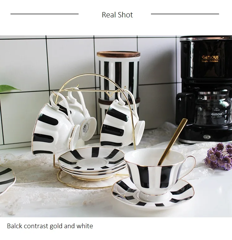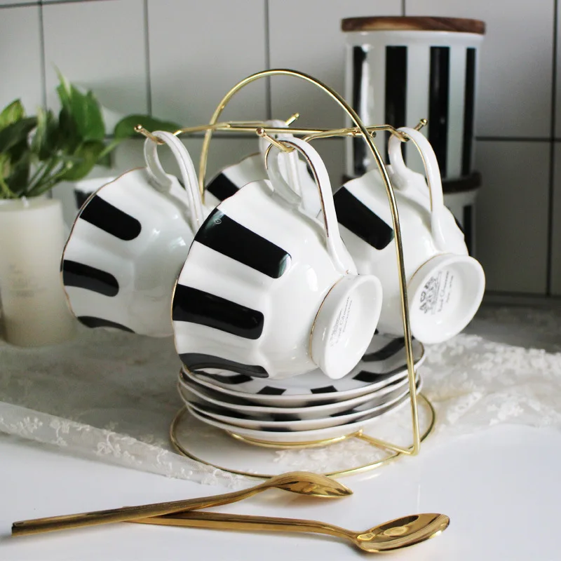 Керамические кофейные чайные чашки с блюдцами, черно-белые полосаты...