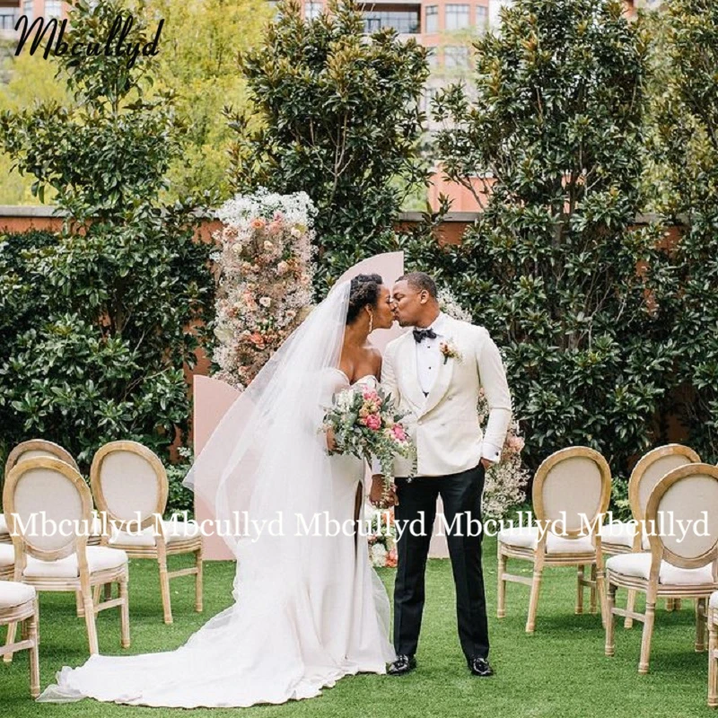 Пляжные Свадебные платья 2021 длинные пикантные Сатиновые Свадебные платья белого цвета с открытыми плечами Разделение с низким вырезом на спине, Длинные вечерние платья на заказ