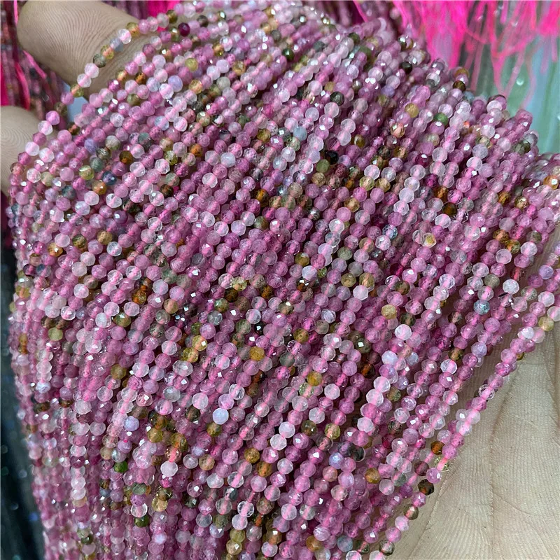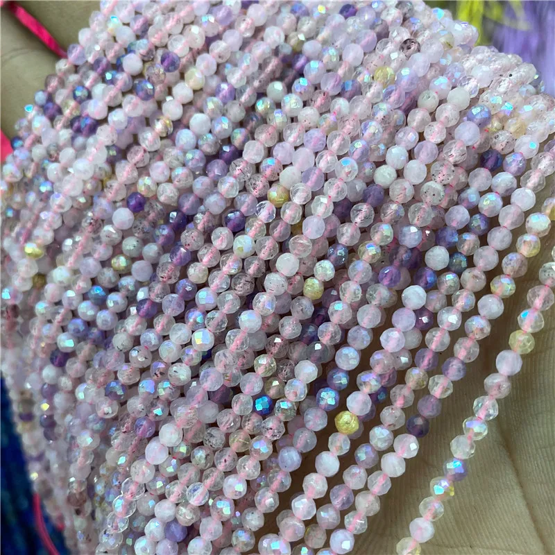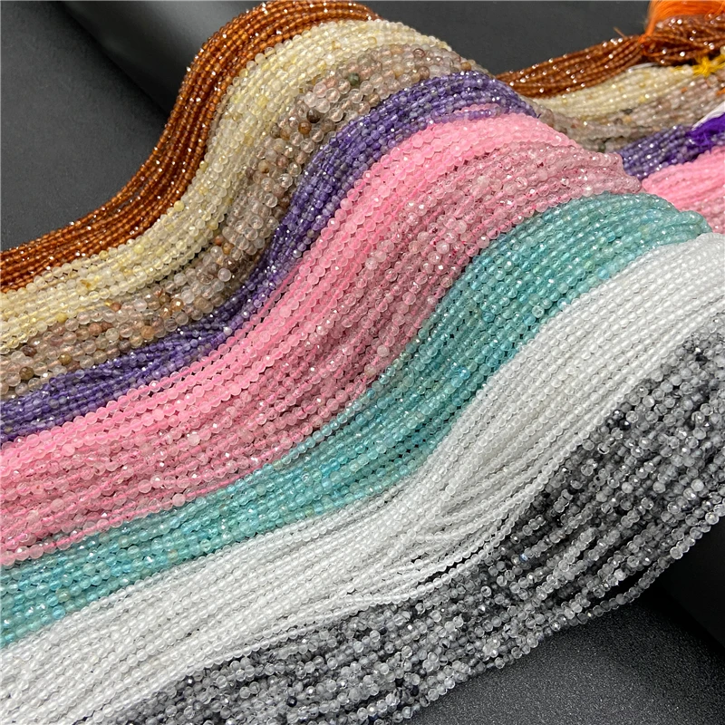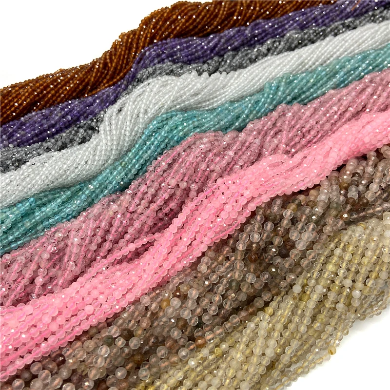 Граненые бусины из натурального камня, 2 3 мм, розовый кварц, циркон, Морган, отверстие, ожерелье, бусины для ювелирных изделий