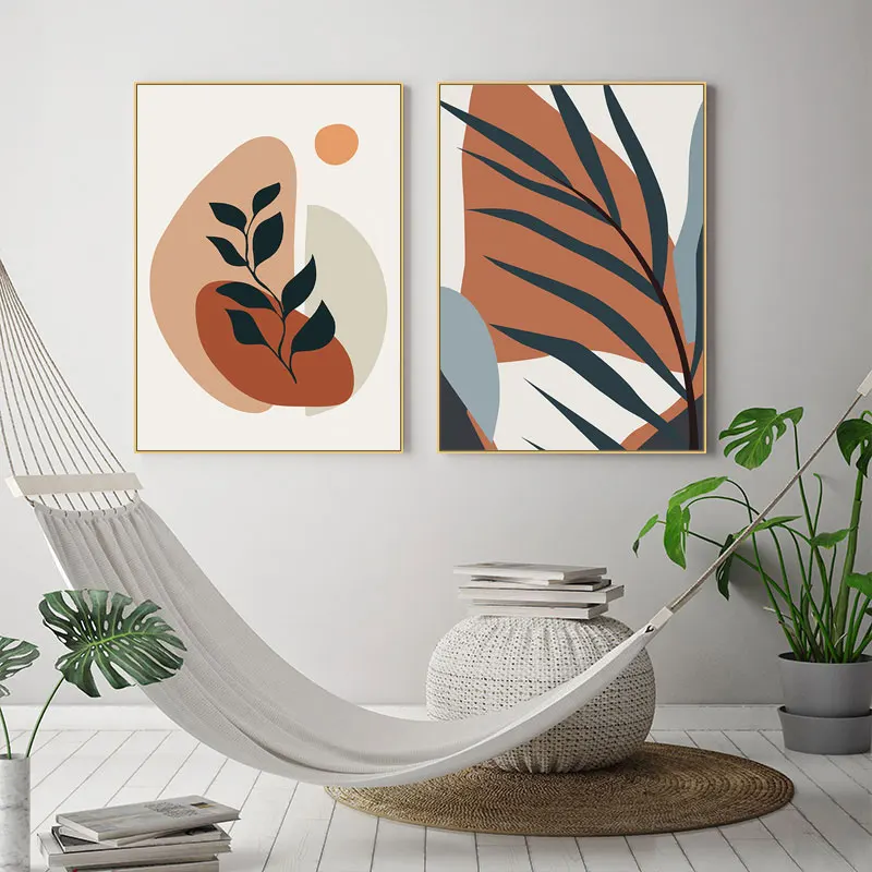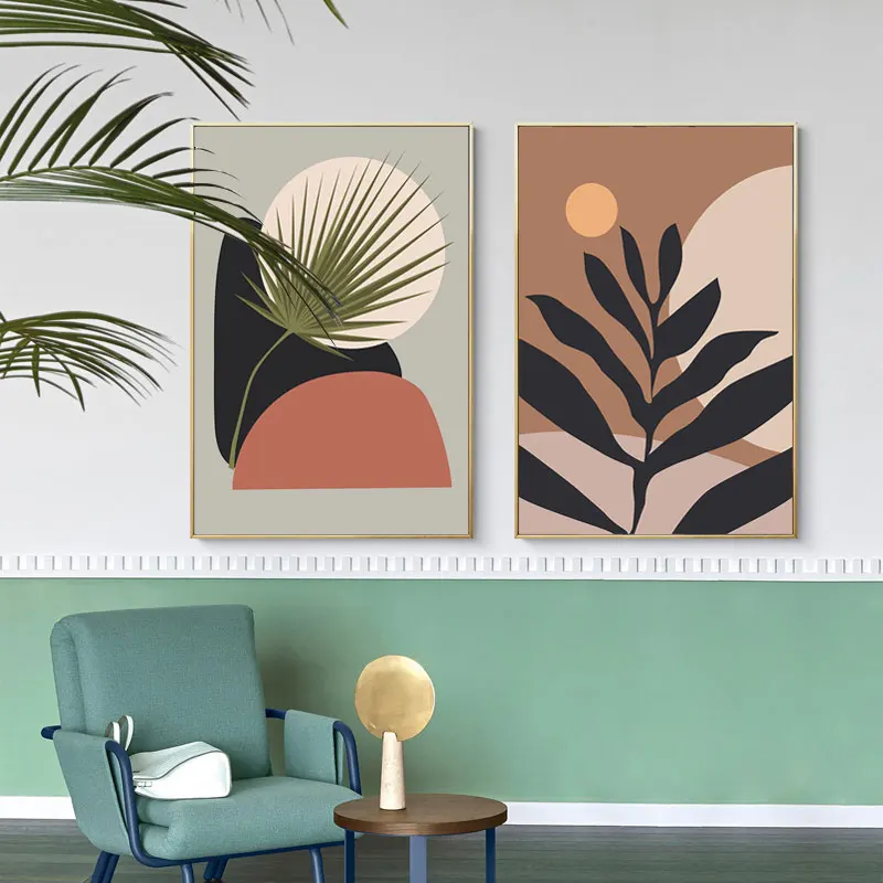 Современная Абстрактная Картина на холсте с тропическими растениями и цветами, геометрическое искусство, скандинавские плакаты и Настенная картина с принтом, декор для гостиной и дома