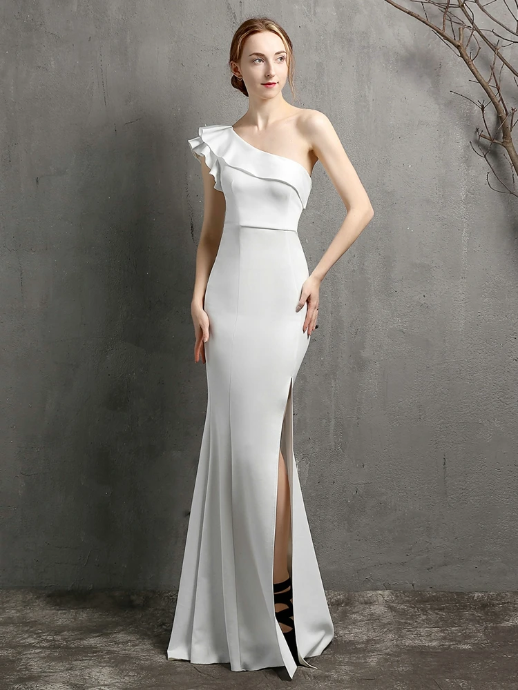 Простое длинное вечернее платье YIDINGZS на одно плечо, элегантное женское платье для свадебной вечеринки YD16023
