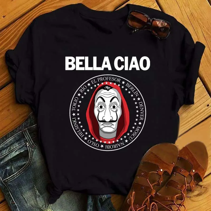 Черная Женская футболка Maycaur La Casa De Papel, футболки с изобретением денег, ТВ-сериала, забавные женские футболки с коротким рукавом и изображением бумажного дома