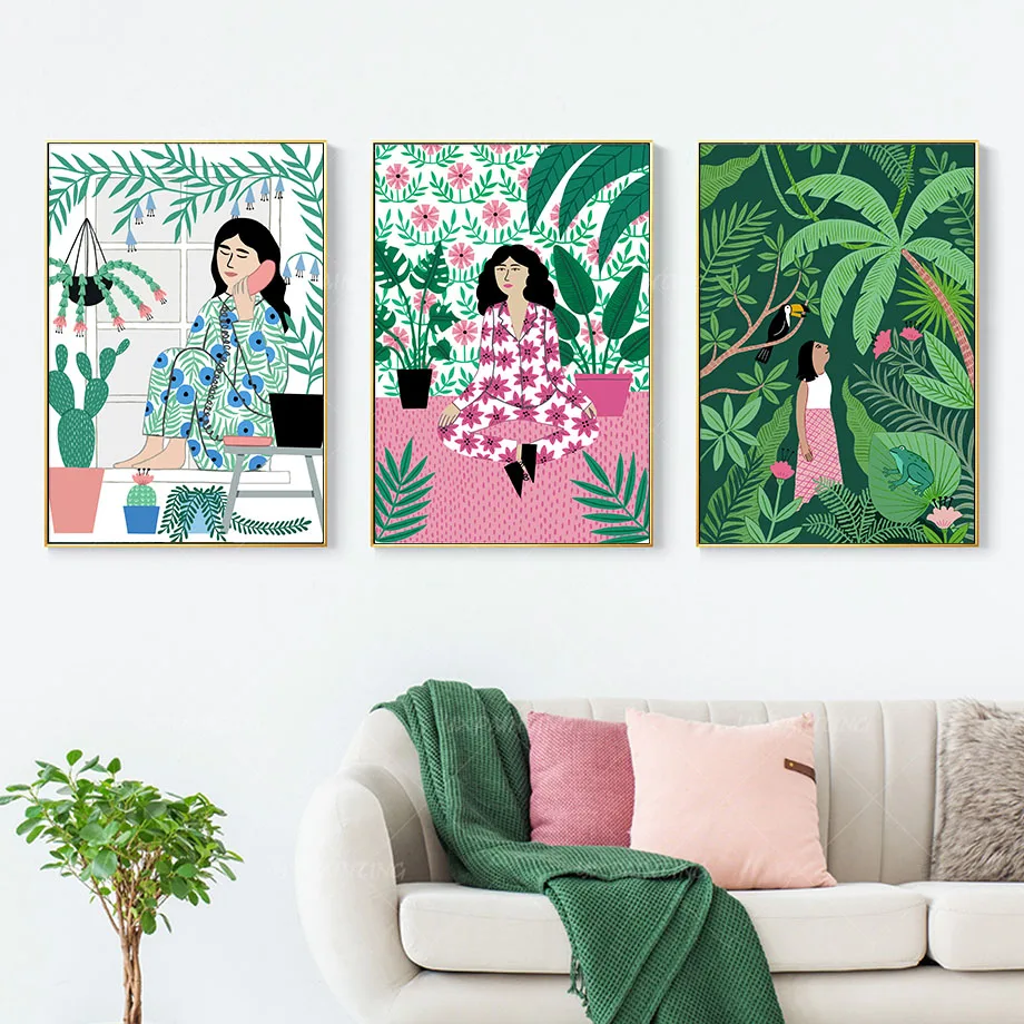 the meAbstract yoga girl fruit forest animal wall art diamond painting