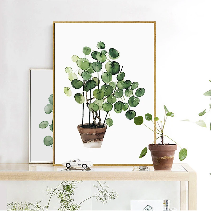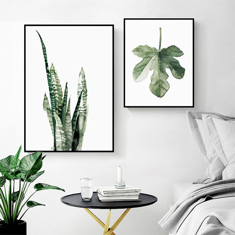 Плакаты и принты на стене. Скандинавские плакаты с зелеными листьями, художественные картины на холсте