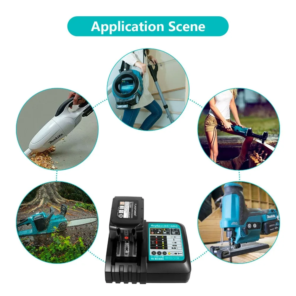 С зарядным устройством BL1860, перезаряжаемая батарея 18 в 6000 мАч...