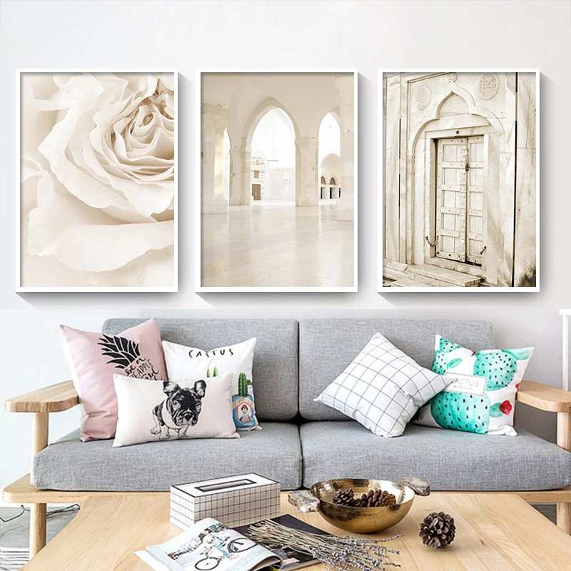 Современный исламский бежевый постер, пейзаж, холст, печать, марокканская мечеть, дверь, настенная живопись, Богемские картины, гостиная, домашний декор