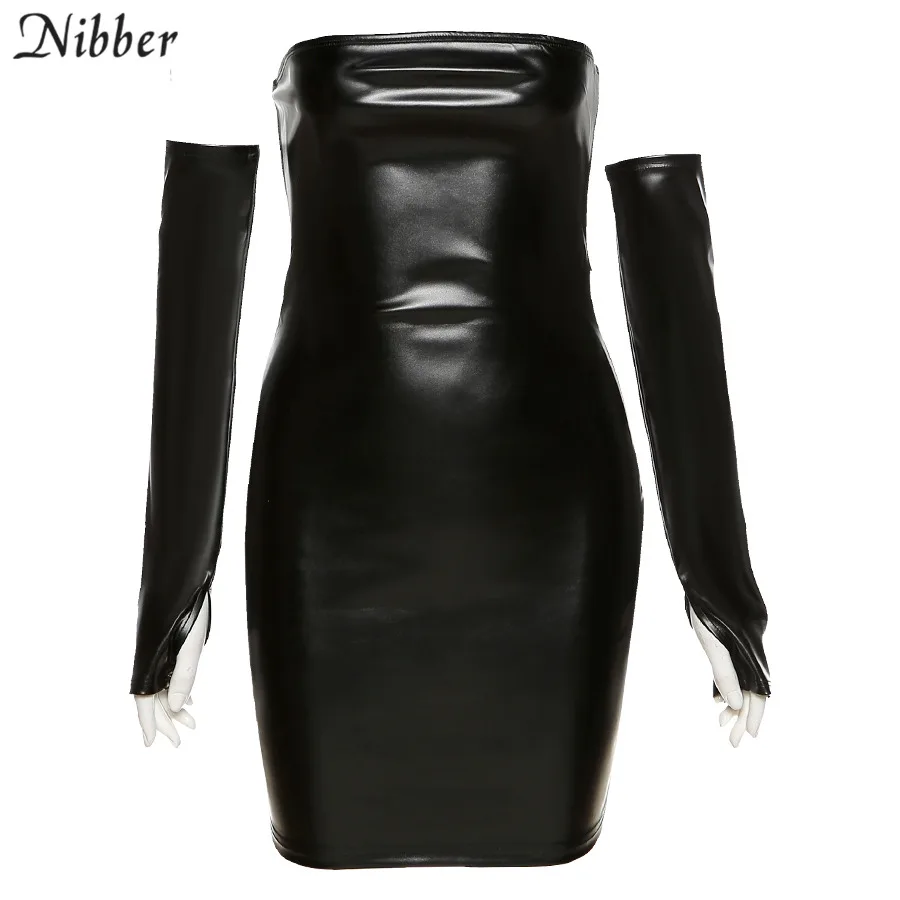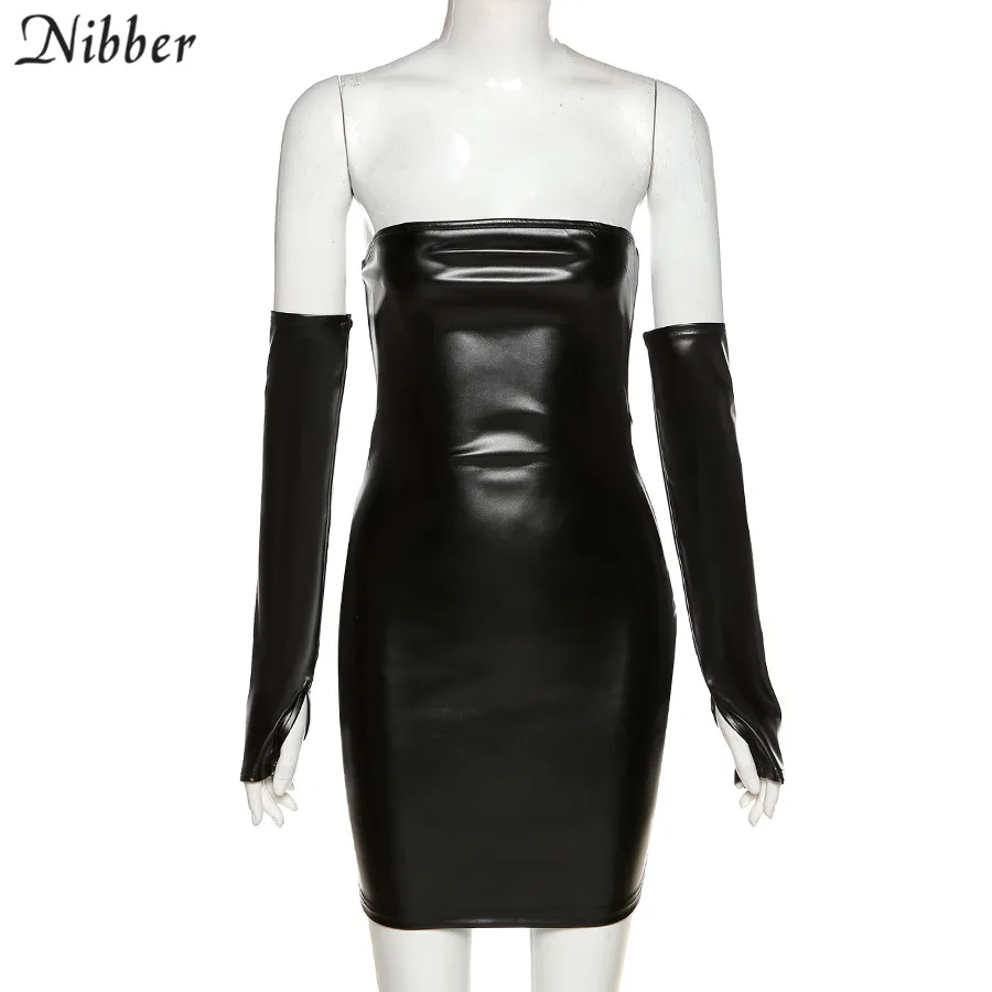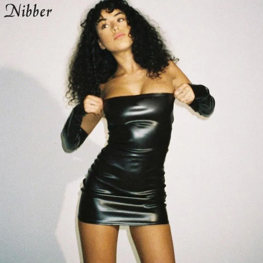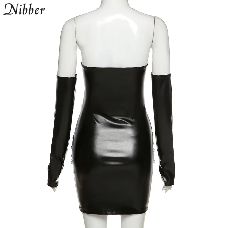 Женское кожаное платье Nibber Y2K, вечернее платье с открытой спиной, с низким вырезом, Клубная одежда, обтягивающее мини-платье черного цвета, 2021