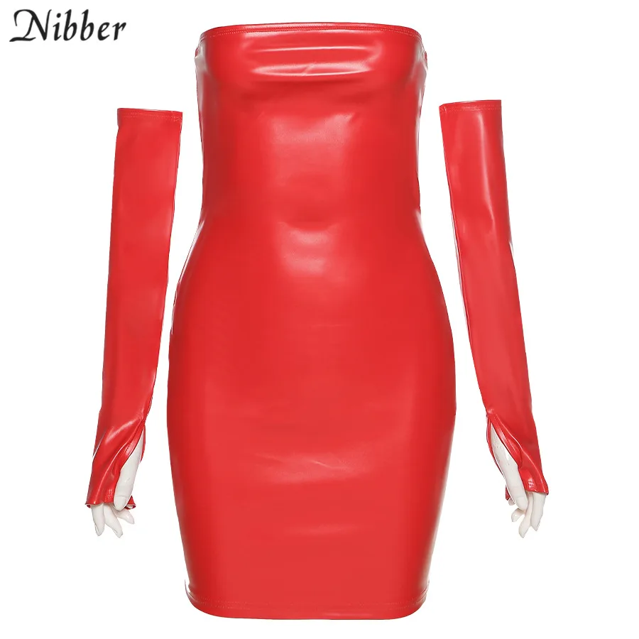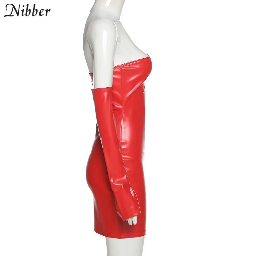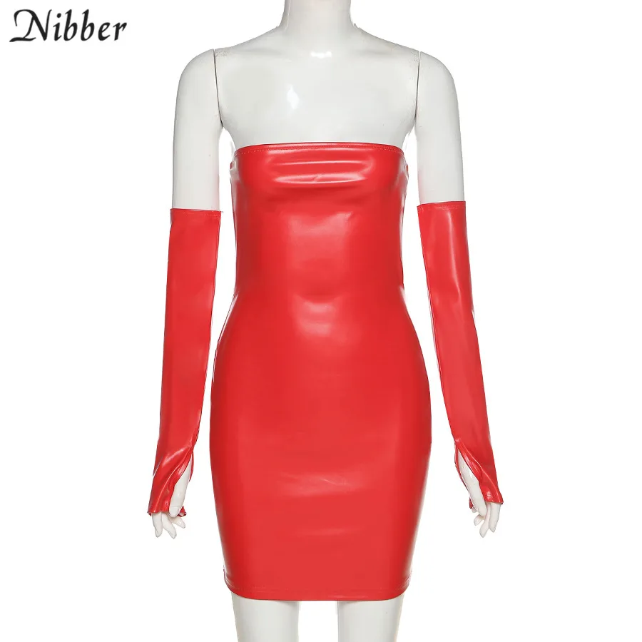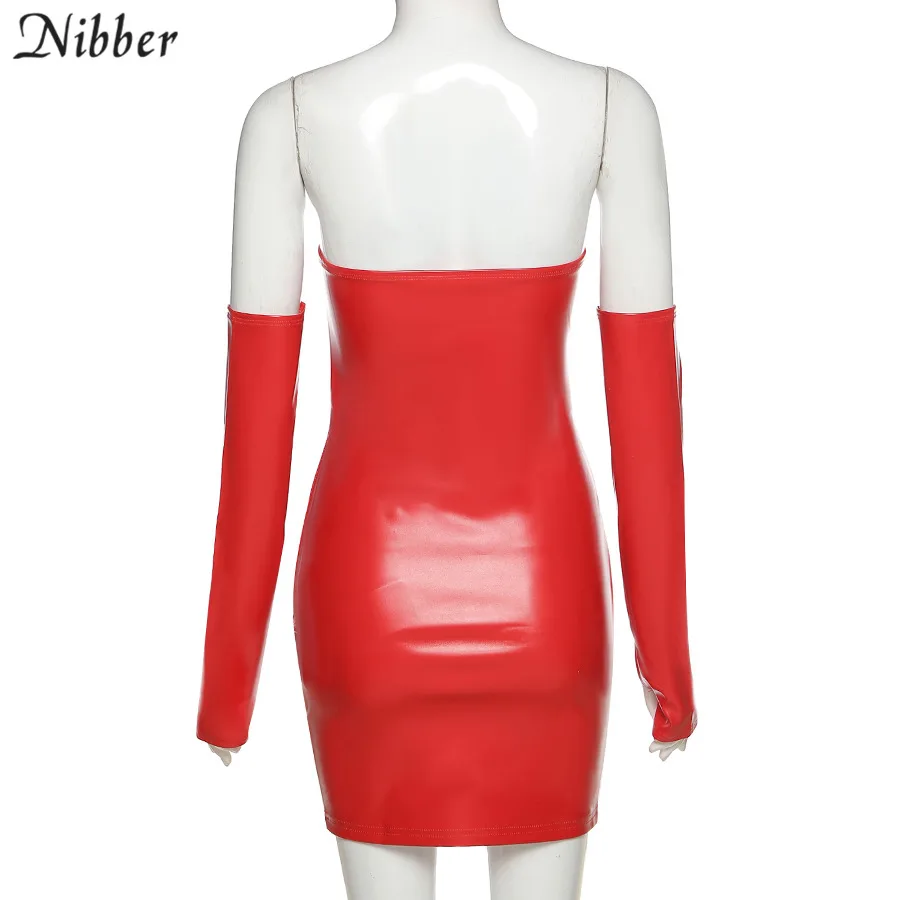 Женское кожаное платье Nibber Y2K, вечернее платье с открытой спиной, с низким вырезом, Клубная одежда, обтягивающее мини-платье черного цвета, 2021