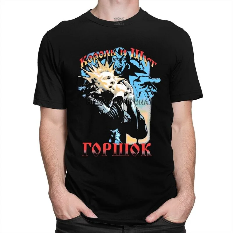 Винтажная футболка с надписью Korol I Shut, Мужская хлопковая футболка с короткими рукавами, уличная Футболка с принтом русского ужаса, панка, короля и шута