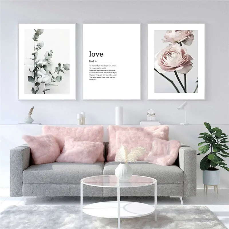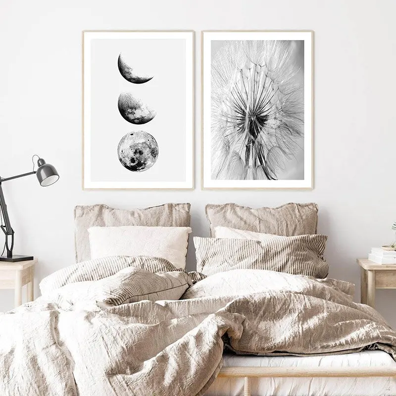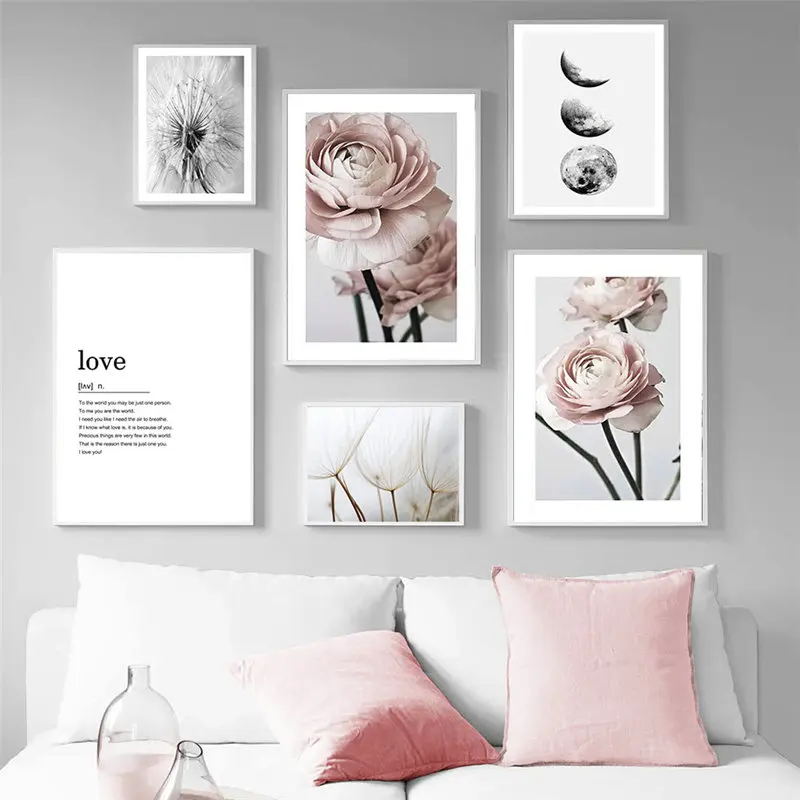 Скандинавская Настенная картина с изображением розовых цветов и растений, Картина на холсте с изображением одуванчика, Луны, плакаты для декора гостиной