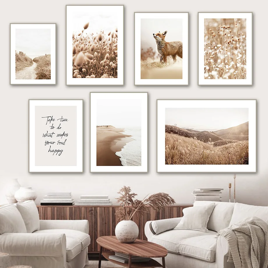 Трава растение пасторальный осенний пейзаж Картина с животными Настенная картина холст Современные скандинавские плакаты и принты для украшения дома