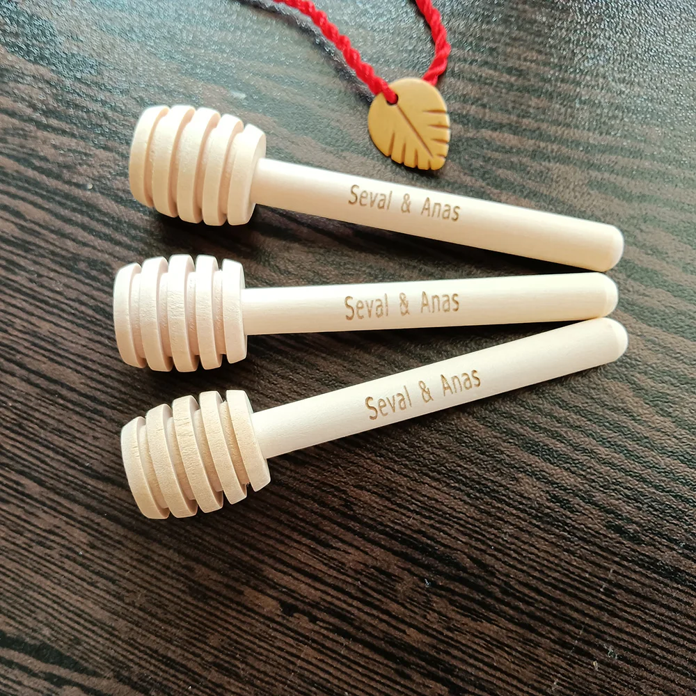Высококачественные персонализированные деревянные палочки для меда, Индивидуальные свадебные сувениры, украшение для детского душа, мини-сервер для медовой банки